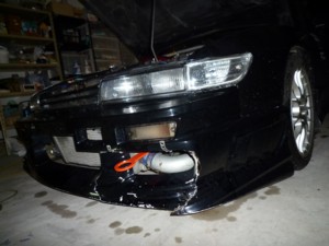 今日は知り合いの車にカーナビを付けて、その後シルビアに牽引フックを取り付けました。 フロントはエアロを付けてると純正牽引フックではバンパーが割れてしまうので、だいぶ前に購入しました。 しかし、汎用品を買ったので、うまい付け方が浮かばず、取付が延び延びになってしまってました。 でも、いい案が浮かんだので、今回取り付けました。 今までは助手席側はナンバーがあるので、運転席側に付けることばかり考えてたけど、インタークーラーのパイピングがあり、うまく場所が確保できなかったけど、運転席側はオイルクーラーを移設するかもしれないし助手席側のナンバーの裏に取り付けることにしたらうまく付きました。 まだまだ課題は多いけど、とりあえずサーキットを走れる状態にできました。長かった。。。 近いうちに走りに行きます。 | ![]() |