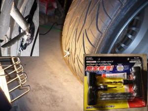 いつの間にか、下の子がよちよち歩くようになってました。最近仕事ばっかりで朝ちょこっと見るだけだったからね。子の成長とはいつもながら素晴らしいと感動しております。 さて、車です。今日はパンク修理をしました。 ガススタとかにお願いしようかとも思ったけど、やっぱりやってみたい欲がむくむくでてきて、自分でやることにしました。 ホームセンターでパンク修理キットを買いました。パンク修理剤もあったけど、手軽だけど先がない緊急用だということで、修理キットにしました。 約2,000円。たぶん修理をお願いしても同じ位でやってくれるのかな? まー損得の話じゃないからね。そもそも損得を考えてたら今のシルビアは乗ってられません。いろいろ苦労する代わりにいろいろな素晴らしい経験もできるのです。んー、いい車だ。 ただ、今日は夜メチャメチャ眠かったから、仮眠をとって夜3時過ぎにスタート。作業時間はだいたい30分でした。今日は初めてだったので説明書を読んだり写真を撮ったり、そのときそのときの状況を見ながらやってたからそれだけかかったけど、慣れれば10分もかからん作業だね。 今日はとりあえず補修までで、接着剤が乾いてから明日か明後日位に仕上げをして空気を入れてみようと思います。 素人の作業でホントに補修できてるのかな?若干の不安はあるけど、失敗だったらまー諦めて新しいタイヤ買います。 穴が空いてたのが溝のゴムの薄い部分だから強度的に少し不安はあるんだよね。。。 でも、これで成功すれば修理キットにはあと2回分の材料は残ってるし、それがなくなっても材料だけのキットなら500円位で3回分のものが売ってるし、今後を考えればプラスだね。考えてみれば釘やネジを踏んでパンクなんてのはありえる話だからね。 とりあえずは、仕上げ待ちでーす。 | ![]() |