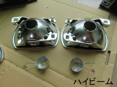 今日はヘッドライトの分解をしました。 まずはヘッドライトユニットからリフレクター等を外します。 光軸調整用のネジ(画像の白〇)をいっぱいまで緩め、水色〇の裏にあるジョイントボール?を外すと外すことができます。 その後、かしめを外してリフレクターからバルブベースを取り外し、さらにロービームはシェードも外します。 今回はリフレクター、バルブベース、シェードを再メッキしてもらいます。 ロービームはかなりメッキがはがれてるけど、特に助手席側がひどいね。。。ハイビームはほぼ劣化なしに見えるけど、せっかくの機会なので一緒にやってもらいます。 さっそく業者さんに送りました。 また時間があるときに手元に残ったヘッドライトガラス部分と本体の清掃をします。 メッキから戻ってくるまでにできればいいなー。 | ![]() ![]() ![]() ![]() ![]() ![]() ![]() ![]() ![]() ![]() ![]() ![]() ![]() ![]() ![]() |
