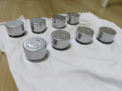 今日はピストンを磨きました。 楽になるかもと思いリューターを買ったけど、回転するとコンパウンドがとんでしまったりしてピストン磨きには向かなかったかな。(^_^;)まーまた何かに使います。 結局ほぼ手で磨きました。 ウエスに鏡面用コンパウンドをつけてひたすら磨きました。 内側と縁は2000番の耐水ペーパーで軽く磨いたのみ。溝はマイナスドライバーで錆を削った程度でまーいいかな。 消耗しているところはあるけど、とりあえずピストンはこんなところです。 明日はキャリパーを掃除しようかな。 | ![]() ![]() ![]() ![]() ![]() ![]() |